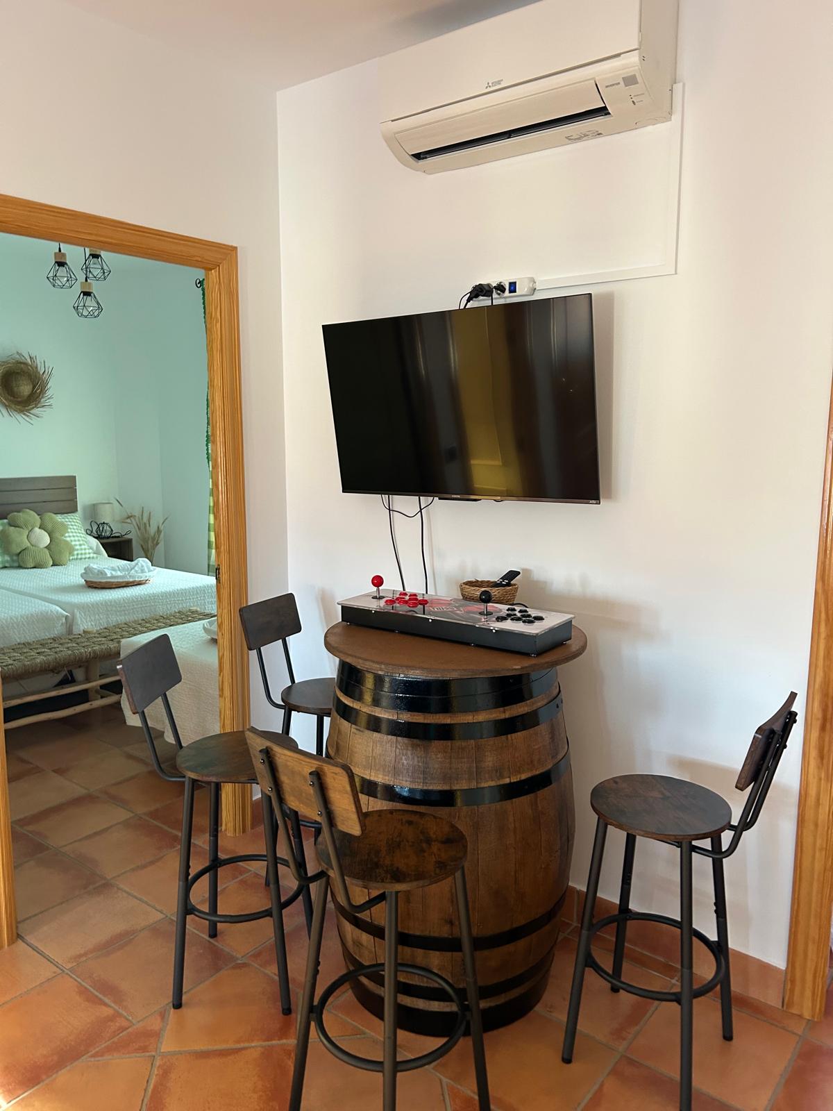 Espacio de juegos con futbolín y juegos de mesa, ideal para tardes divertidas y risas en grupo.